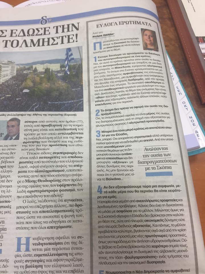 Μιλώντας, όμως για το Σκοπιανό σίγουρα η Ελλάδα δεν βρίσκεται στην καλύτερη της θέση, ούτε από πλευράς οικονομικής δύναμης ούτε από πλευράς διεθνούς αξιοπιστίας .