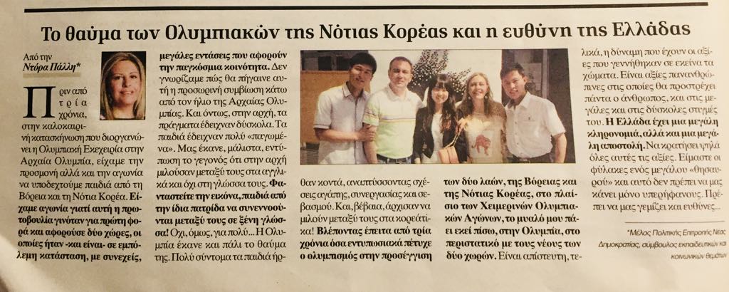 «Το θαύμα των Ολυμπιακών Αγώνων της Κορέας και η ευθύνη της Ελλάδας.» Άρθρο μου στην εφημερίδα Κυριακάτικη Δημοκρατία.